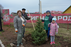 Мемориал Славы в селе Калтасы украсили голубые ели